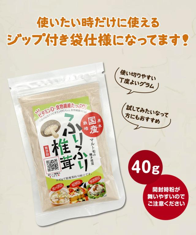 乾椎茸パウダー ふりふり椎茸 40g 国産 焼成加工 干ししいたけ 干し椎茸 粉末 粉 パウダー 乾燥しいたけ 乾燥椎茸 しいたけ 椎茸 シイタケ 日本産 調味料 保存料 不使用 無添加 出汁 だし スープ 味噌汁 離乳食 天然 自然 素材 栄養 食物繊維 ビタミン 健康食材