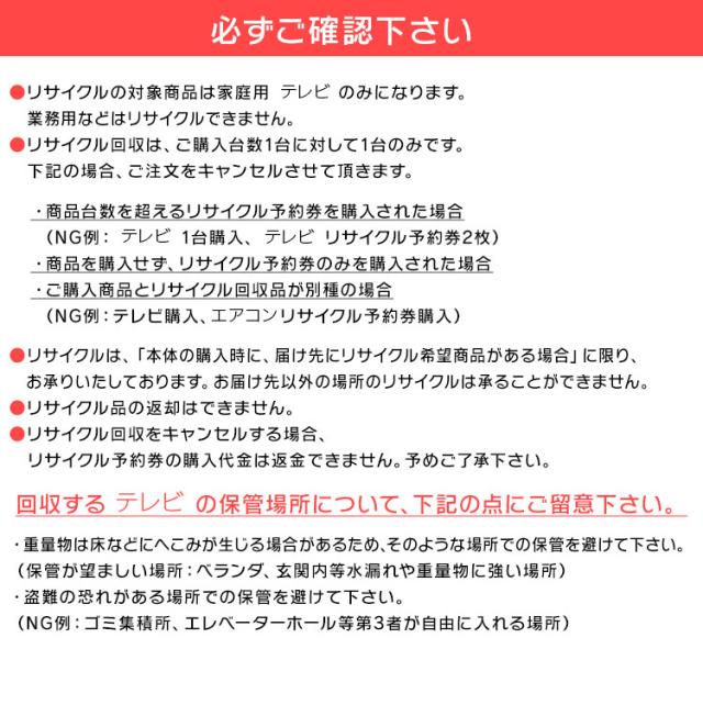 【リサイクルのみご希望のお客様向け】 テレビ リサイクル予約券 リサイクル券【代引き不可】