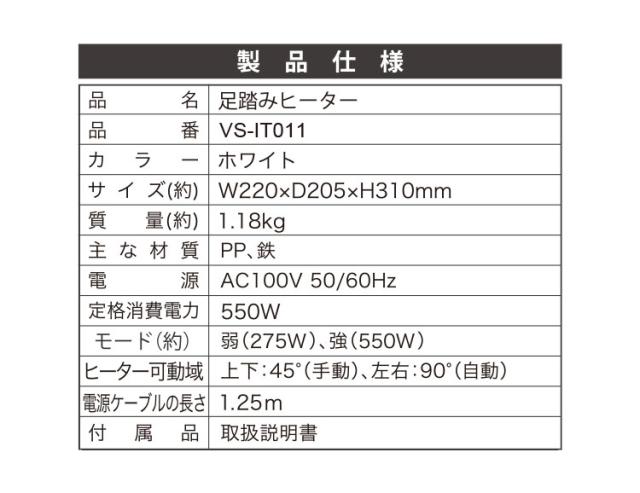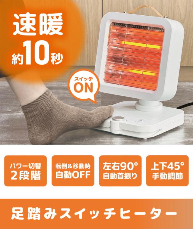 足踏みスイッチヒーター 電気ストーブ 小型 おしゃれ 首振り 足元 ヒーター 暖房 速暖 電気ヒーター 暖房器具 省エネ 過熱保護 転倒オフ 足元暖房 2段階パワー切替 VS-IT011 ベルソス【送料無料】