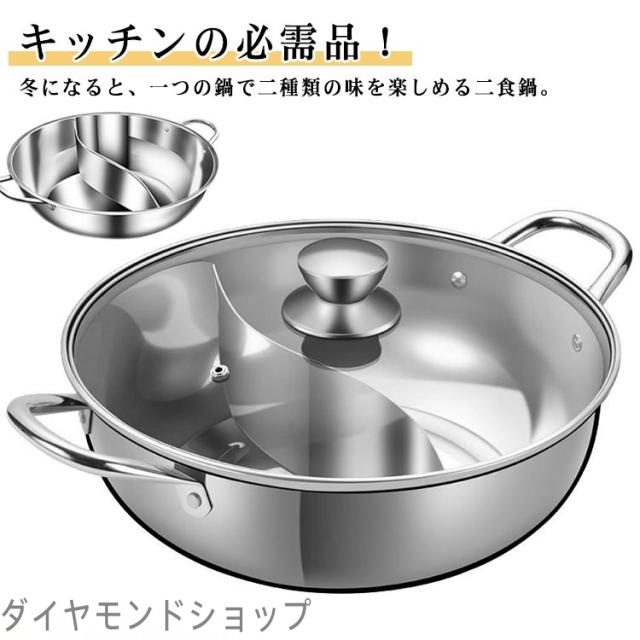 二食鍋 ステンレス製 仕切り鍋 火鍋 2種類 火鍋 仕切り付き しゃぶしゃぶ鍋 ガス火・IH対応 卓上鍋 両手鍋 ガラス蓋 しゃぶしゃぶ キッチン用品 調理器具 中華火鍋 4人用 5人用 鍋料理 キッチン用品
