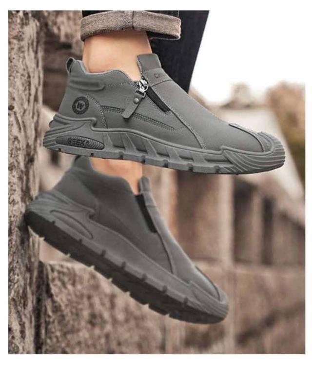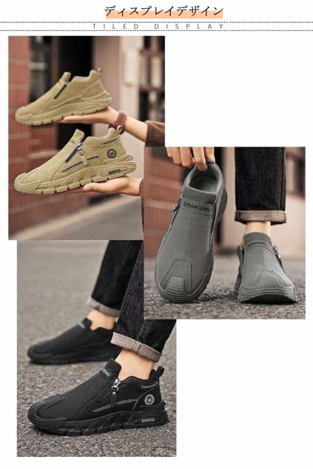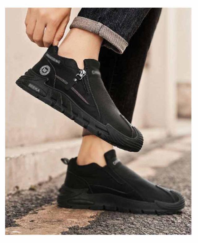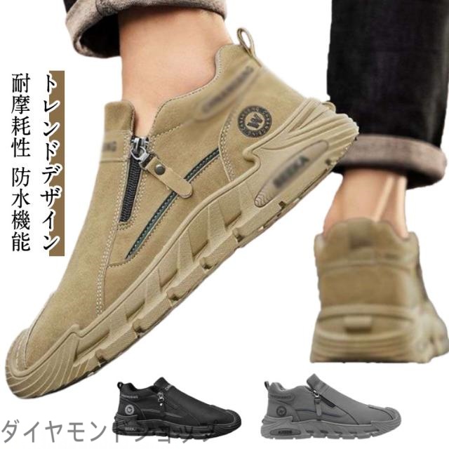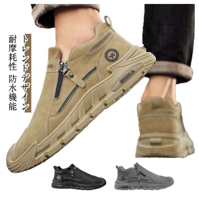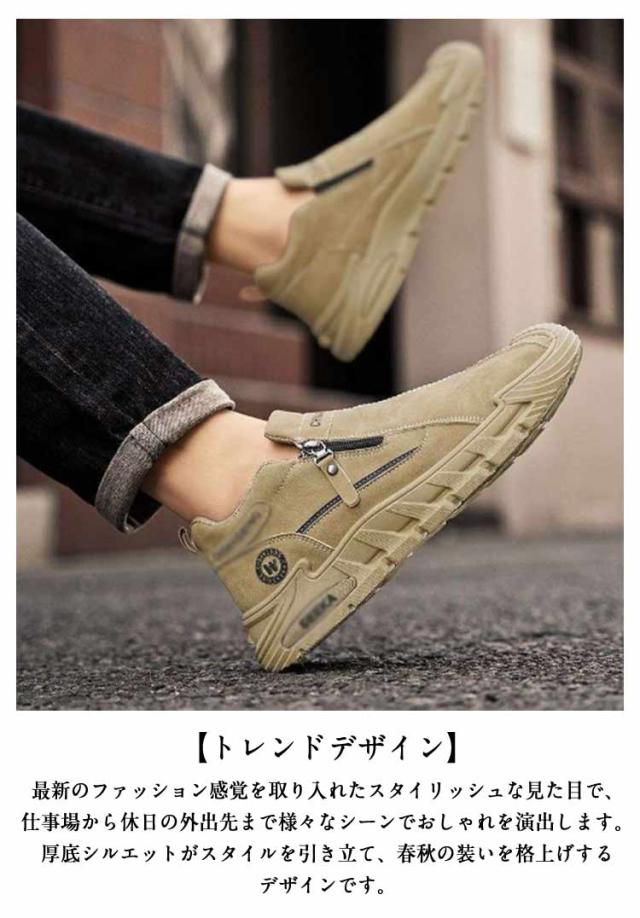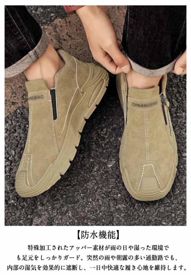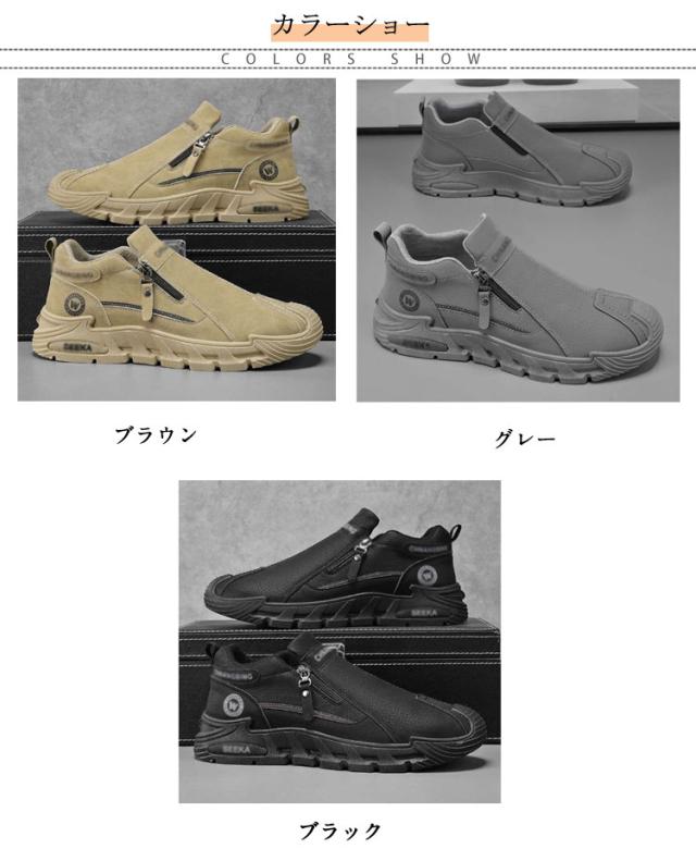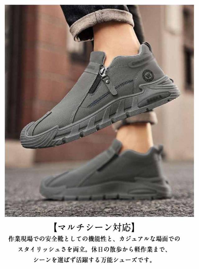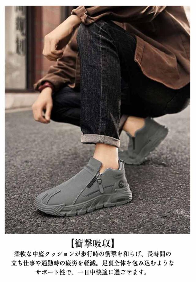 滑り止め メンズ 身長アップ スニーカー 防水 カジュアルシューズ ウォーキングシューズ 通学 厚底 サイドジッパー ハイカット ワークブーツ 軽量 通気 耐磨耗 紐なし 登山 通勤 ウォーキングシューズ 日常着 バイク用 滑りにくい 作業靴 軽量
