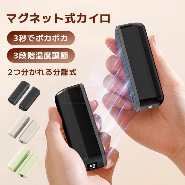 最安挑戦 冬新作 送料無料 新作 カイロ マグネット型 電気カイロ 3秒急速発熱 3階段温度調節可能 分離式 充電式カイロ 5200mAh大容量 軽量 コンパクト 持ち運びやすい 40°-60° 磁力ハンドウォーマー 2個セット 1台2役 2つ分かれる分離式