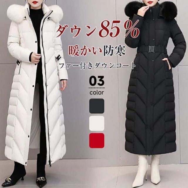 ダウン85% ダウンコート レディース ロング 冬 ダウンジャケット ロングダウンコート ファー付き ファー取り外し可能 アウタージャンパー前開き 暖かい 防寒撥水 軽量 大きいサイズきれいめ 30代 40代 50代 60代 細見え 送料無料