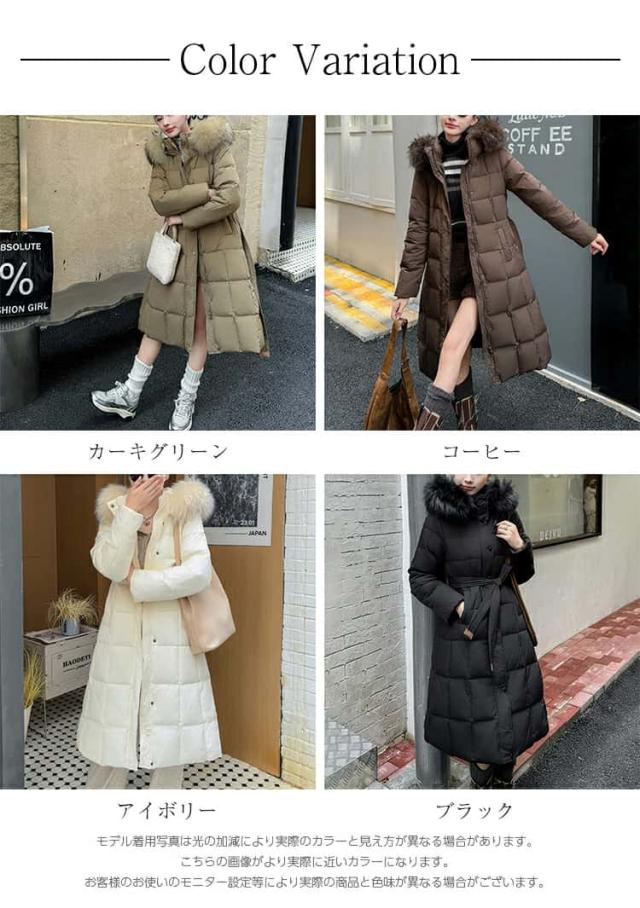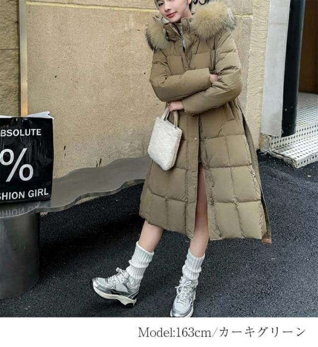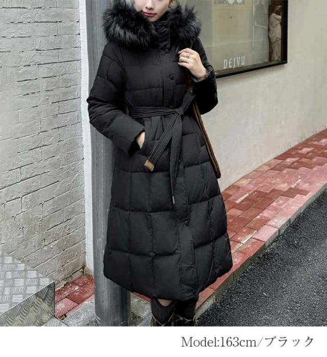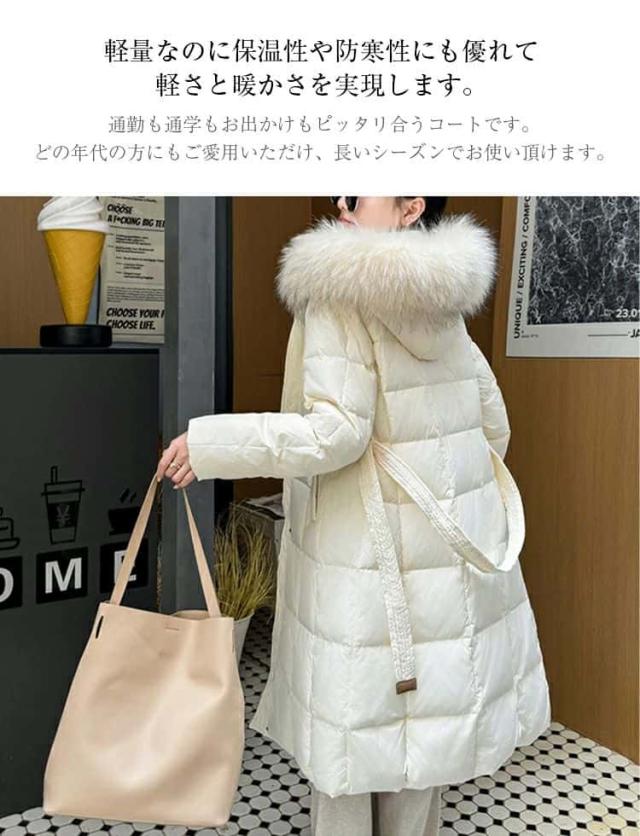 ダウン90% ダウンコート レディース ロング 冬 フード付き ダウンジャケット ロングコート ファー付き ファー取り外し可能 アウタージャンパー 前開き ドロスト 暖かい 防寒 撥水 ロング丈 軽量 大きいサイズ きれいめ 送料無料