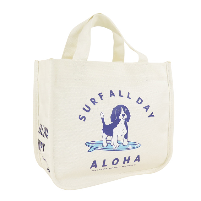 ハワイアン トートバッグ ハワイアン雑貨 ハレイワ HALEIWA NORTH SHORE DOG サーフィンドッグ ミニトートバッグ (アイボリー) お出かけバッグ ハワイアン雑貨 散歩バッグ 雑貨 ハワイアンバッグ