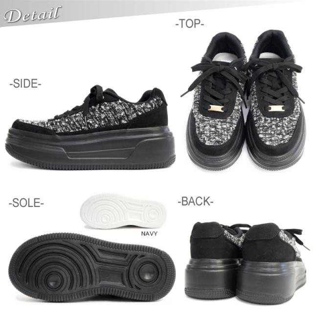 歩くだけでスタイルアップ。ツイードが魅せる大人厚底スニーカー