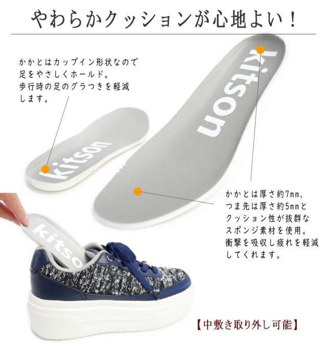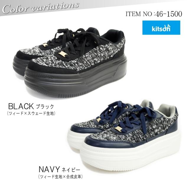 スニーカー レディース 厚底 kitson キットソン ローカットスニーカー 歩きやすい 3E 軽量 ツイード 大人カジュアル 美脚効果 ボリュームソール クッションインソール レディライク