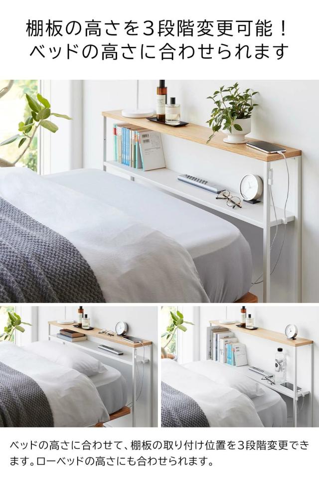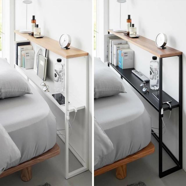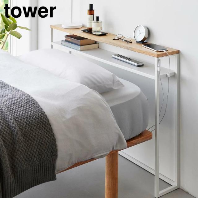 MM1 棚板が動く後付けヘッドボード タワー 山崎実業 tower ホワイト ブラック 1682 1683 コンソールテーブル スチールラック オープンラック 収納棚 枕元 シングルベッド ベッドまわり おしゃれ シンプル 公式 yamazaki タワーシリーズ