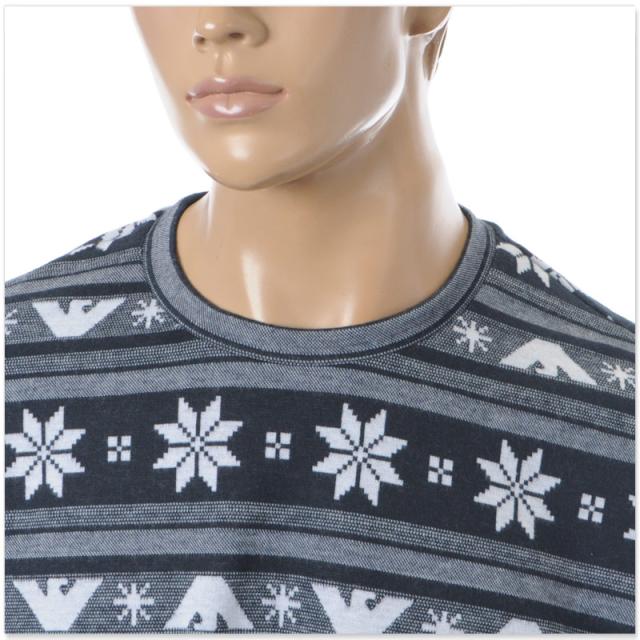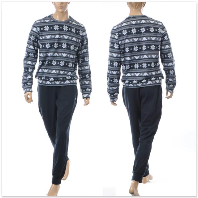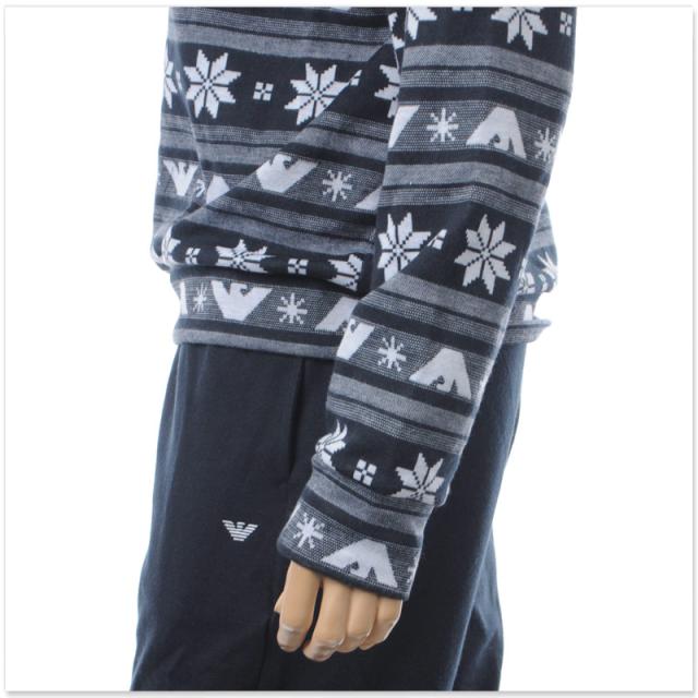 エンポリオアルマーニ EMPORIO ARMANI UNDERWEAR メンズ セットアップ EM000617 AF15009 イーグルロゴ ノルディック柄 ホリデージャカード ジャージー 総柄 ルームウェア 上下 長袖 ネイビー 紺 2025秋冬新作