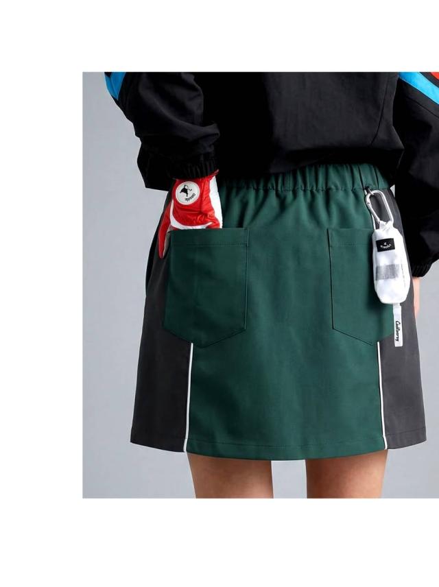 スポーティーな配色デザインが目を惹く、ゴルフウェアとして活躍するゴルフスカート。
