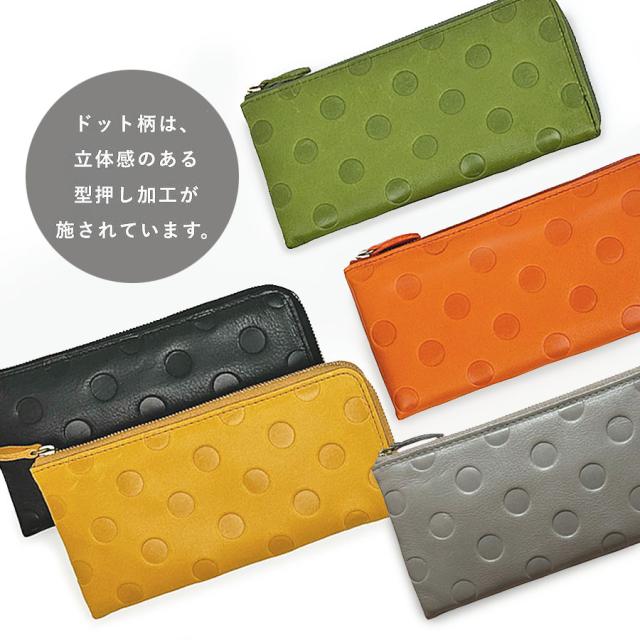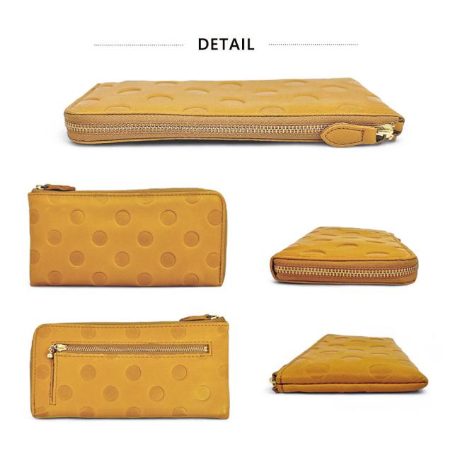 ドットデザインの型押しがお洒落な長財布 スリムでバックの中もすっきり。
