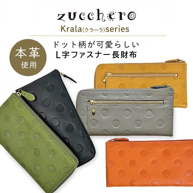 財布 長財布 レディース ブランド 牛革 日本製 ファスナー長財布 55306 zucchero ズッケロ KRALA クラーラ L字ファスナー長財布 本革 国産 大容量 おしゃれ かわいい カード収納 スリム 小銭入れドット 水玉 人気 ナチュラル 女性 ママ お母さん おばあちゃん プレゼント