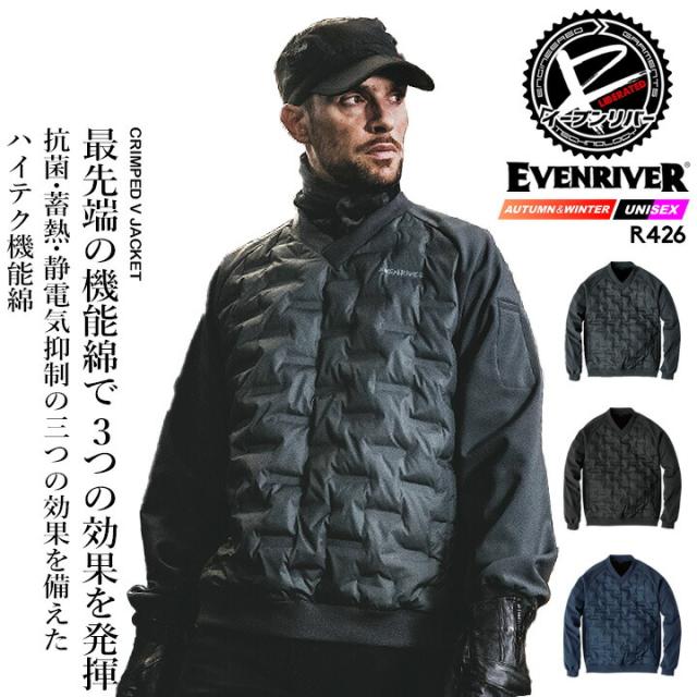イーブンリバー 防寒ジャケット 作業服 EVENRIVER クリンプドVジャケット R426 防寒 アウター 被りタイプ ヤッケ 中綿 蓄熱 保温 軽量 抗菌 アウトドア バイク 自転車 作業着 ワークウェア ジャケット アウター
