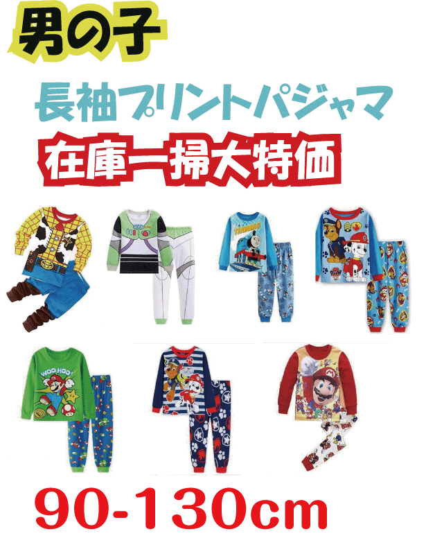 男の子 長袖パジャマ 在庫一掃大特価 ¥1,000 パウパトロール スパイダーマン カーズetc 90cm-130cm 綿100% 即日発送!