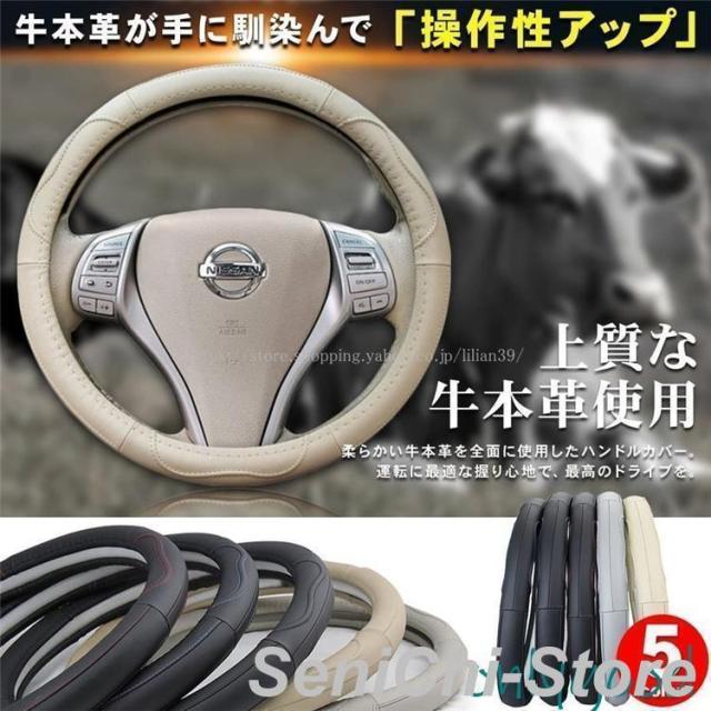 ハンドルカバー ステアリングカバー 本革 車 軽自動車 普通車 Sサイズ 36.537.9cm