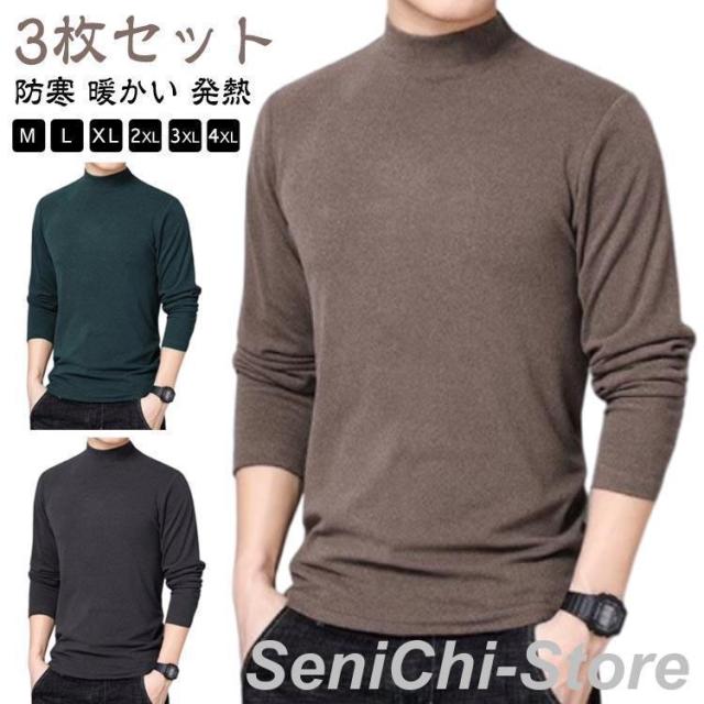 【3枚セット】あったかインナー 暖かい Tシャツ カジュアル ハイネック 保温 【3枚セット】あったかインナー 長袖 通勤 トップス 防寒 メンズ 発