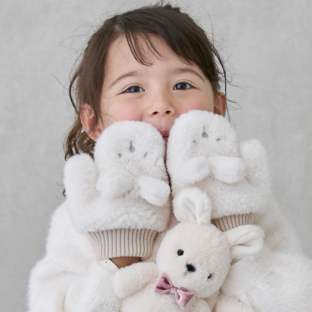 ソフトかつあたたかいボア仕様で、お子さまの手元をやさしく包み込みます。