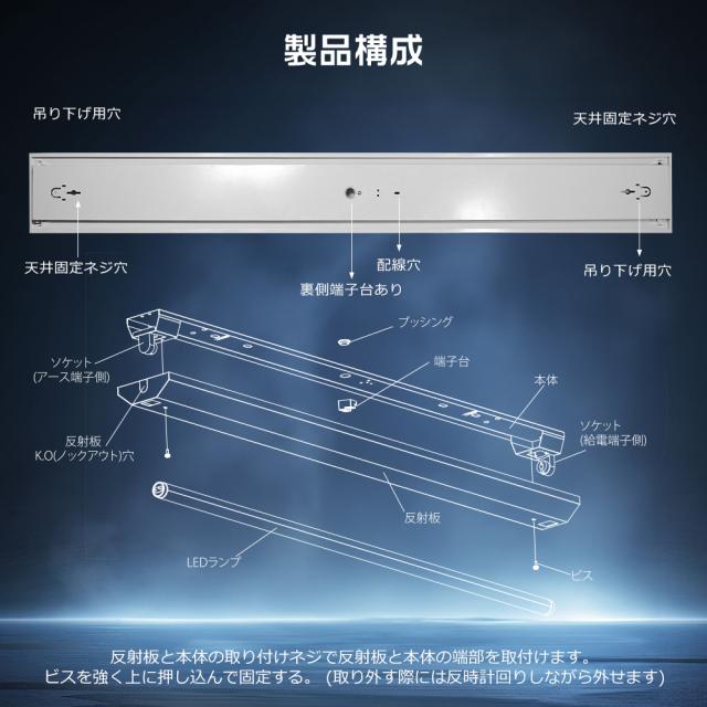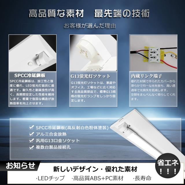 - 伝統的な照明器具とは異なり、このLEDベースライトは天井に直接取り付けるタイプで、配線や工事を必要としません。誰でも簡単に設置でき、工事費用を削減し、手間を省けます。