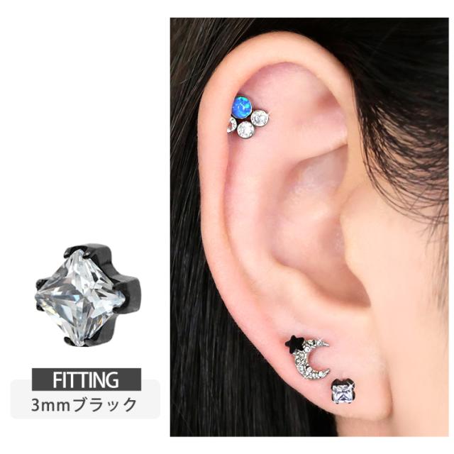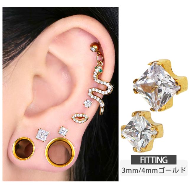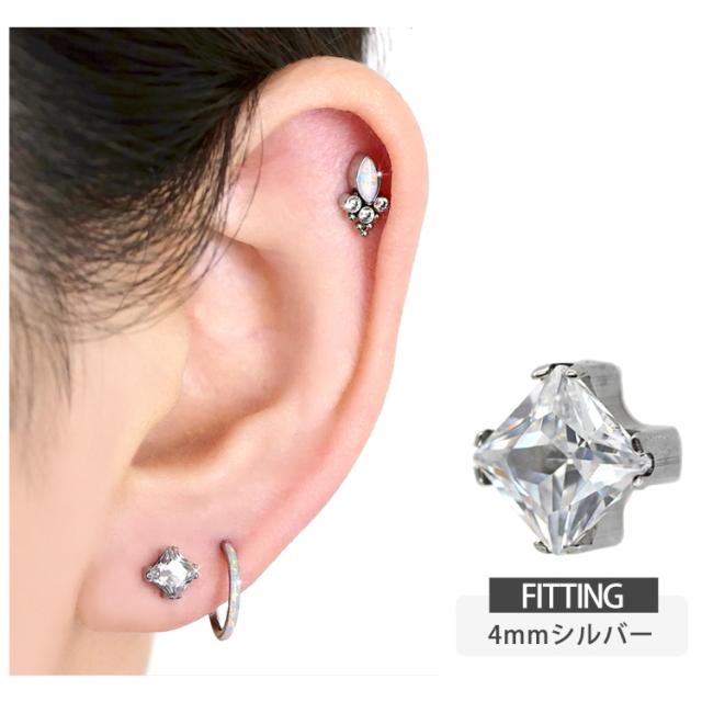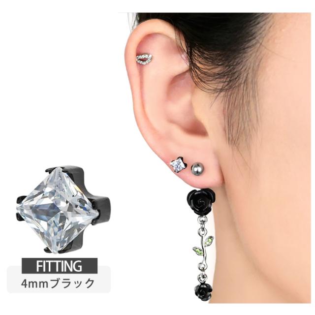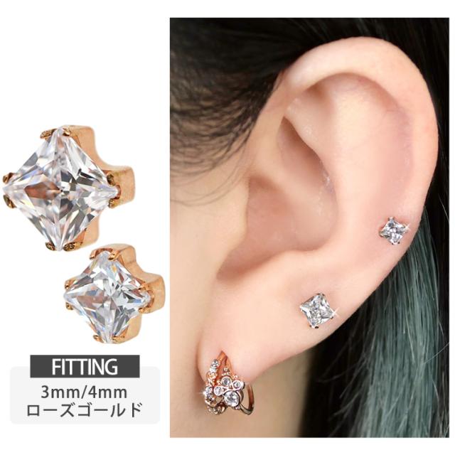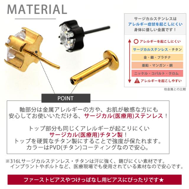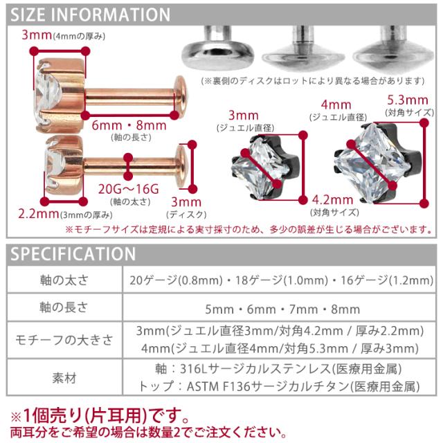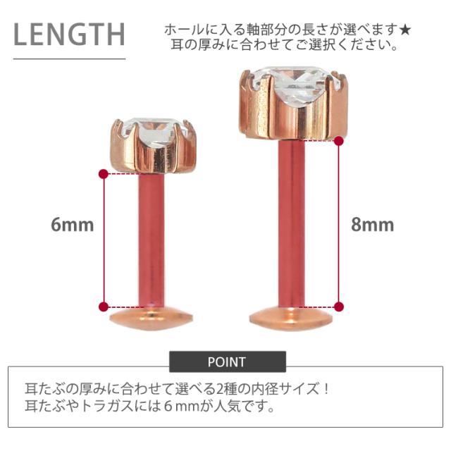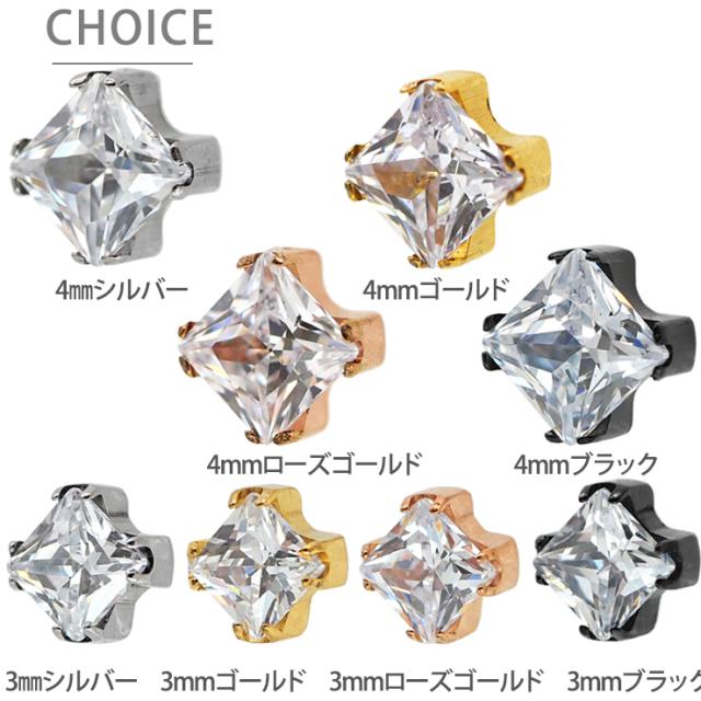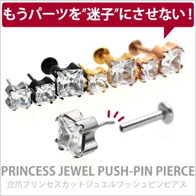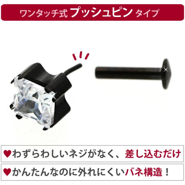 【ネジ不要/摩擦でロック】つけっぱなしピアス ボディピアス 20G 18G 16G カラーボディプッシュピン立爪プリンセスカットジュエルラブレット トラガス 軟骨ピアス 【片耳用】 【30日間お試し期間あり/返品交換保証】