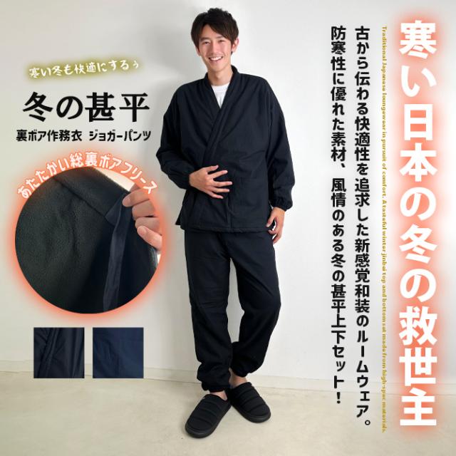 あたたかい裏起毛フリースボア ルームウェア メンズ 冬新作 半纏 上下セットアップ 作務衣 裏起毛 甚平 和装 部屋着 寝巻 イージーパンツ