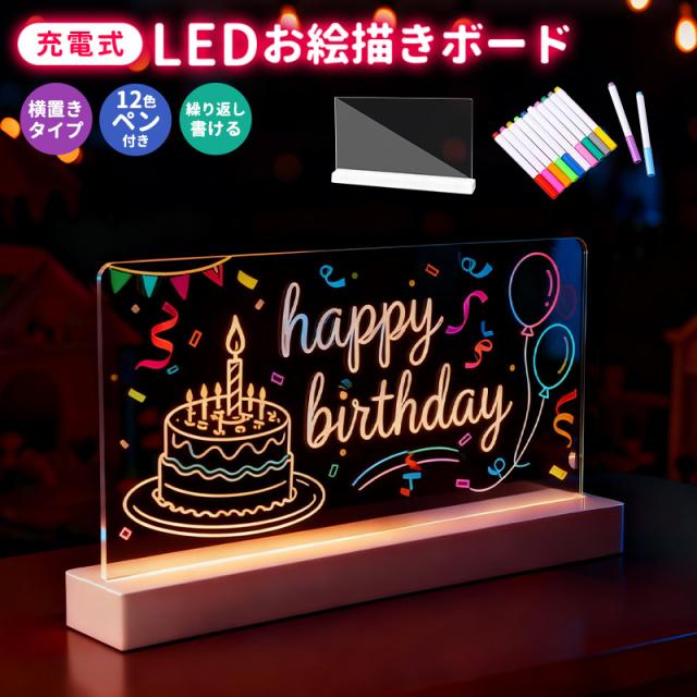 LEDアクリルメッセージボード 充電式 横置きタイプ DIYお絵描きボード 手書きLED看板 LEDメッセージボード 店頭看板 LEDクリアボード
