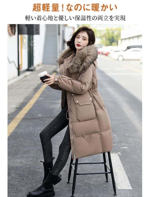 ダウンコート レディース ロング きれいめ ダウンジャケット コート ダウン90% レディース 軽量 大きいサイズ フード付き フェイクファー ボリューム アウター aライン コート 着痩せ 暖かい 軽い 通勤 厚手ダウン 秋冬