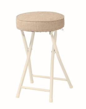 ホワイトフレームとベージュ色のファブリックが相性の良いカジュアルなフォールディングスツールです。