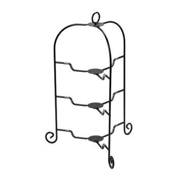 丸盆や敷板をセットして、オードブルやスイーツなどを立体的に演出できるアイアンスタンドです。