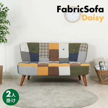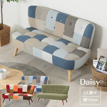 ソファー ソファ2p デイジーパッチワーク ブルー