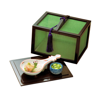 網を通して料理を雅やかに魅せる上品な料理篭です。