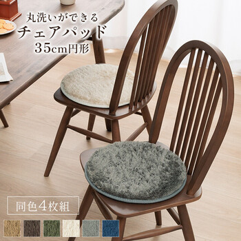 チェアパッド 無地 約35cm丸 4枚組 裏 滑り止め付き