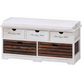 ホワイトウォッシュ加工でレトロ・アンティークな風合いに仕上げた収納付きベンチです。