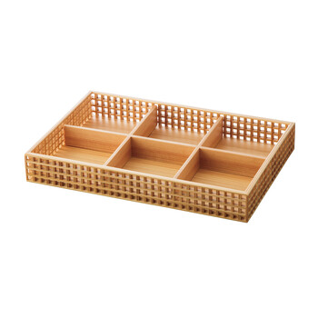 秋田杉を格子状に組んだ、こだわりの六ツ切弁当です。