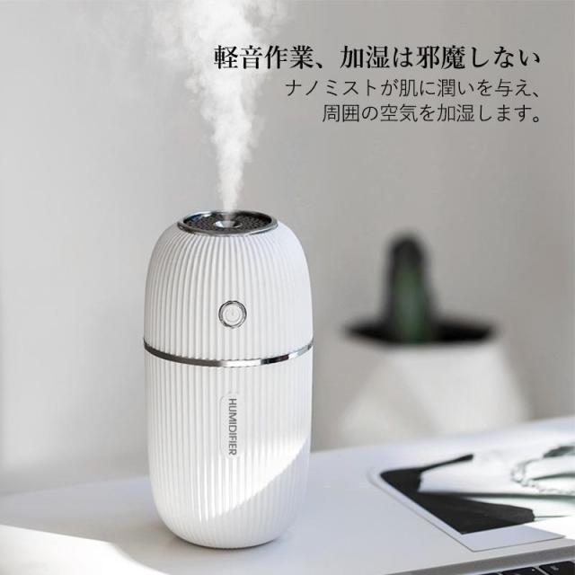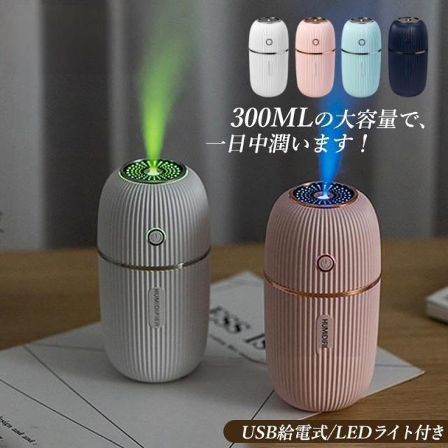 加湿器 超音波式 おしゃれ 小型 大容量 300ml 卓上加湿器 タワー型USB給電 LEDライト付き アロマ対応 寝室 自動車 オフィス 空気浄化 乾燥対策グッズ
