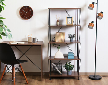 通常のシェルフと異なり、棚の位置が独特な形でインテリア性も高く、一気におしゃれな空間に。