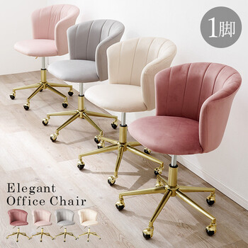 上品さを感じるゴールドの脚にベロア調生地の大人可愛い回転チェアです。