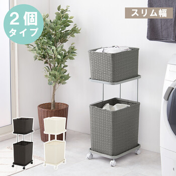 色柄物や汚れた洗濯物を分けて溜められるランドリーワゴン。