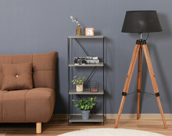 木目調の棚板にアイアンフレームを合わせたシンプルなデザインのオープンラック。