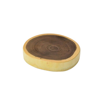 心材と辺材で異なる色のコントラストが楽しめる「エンジュ」の丸太皿です。