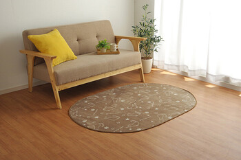 ラグ ブラウン約100×140cm楕円 カーペット洗える ア