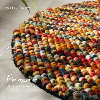 ラグマット 円型 直径約90cm ウール100% 手織り ホ