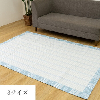 カーペット ブルー約190×240cm 撥水 ギャッベ柄 N