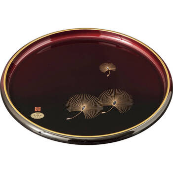 紀州塗 塗分玉虫 金縁 本貝入 松 10.0丸盆 21320