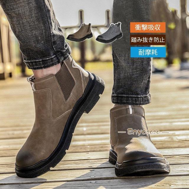 安全靴ハイカット メンズ 防水安全靴 作業靴溶接用ブーツ つま先保護 おしゃれ 耐滑 セーフティシューズ 軽量 衝撃吸収 チェルシーブーツ