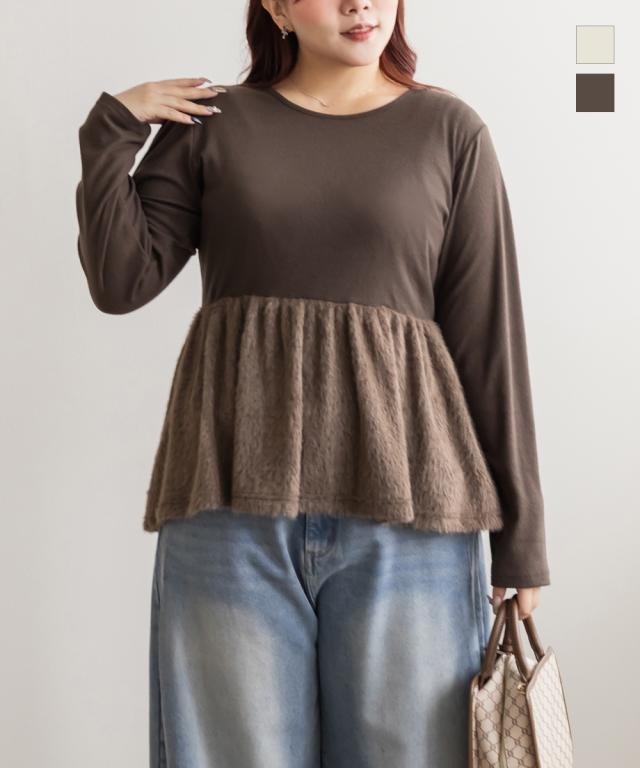 大きいサイズ/レディース/3L/4L/5L/フェザードッキングペプラムトップス