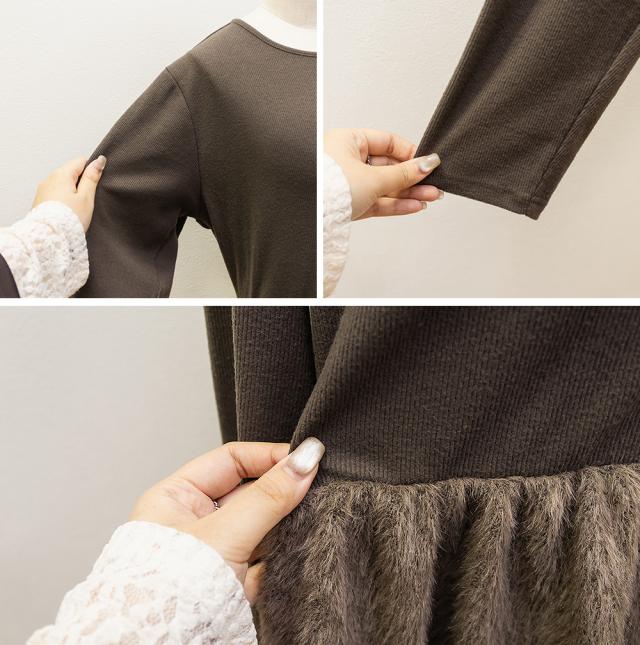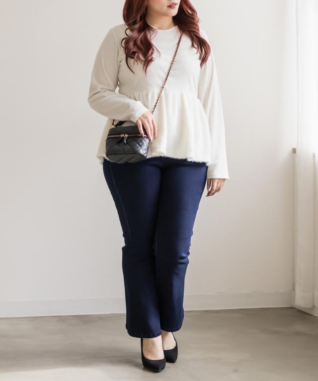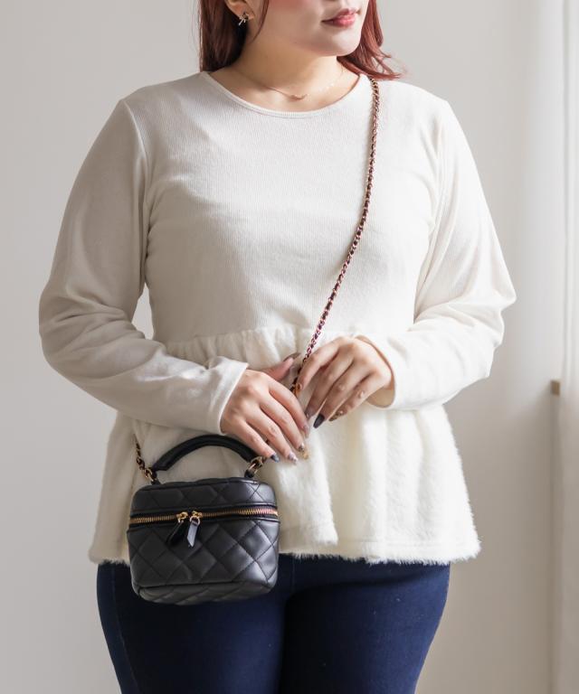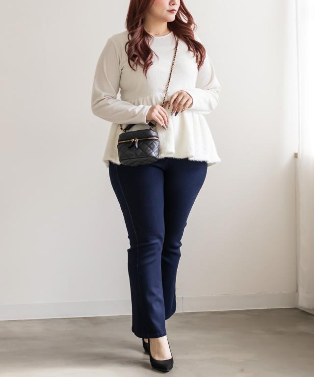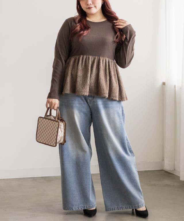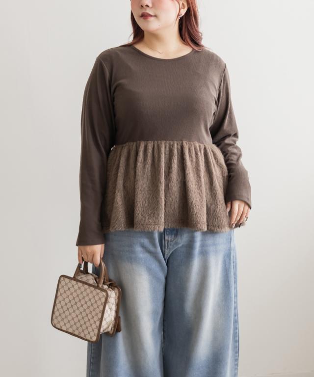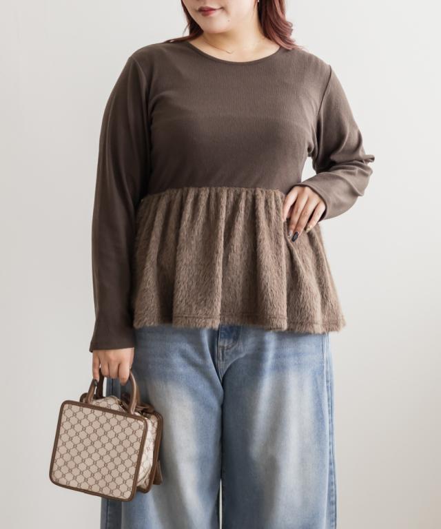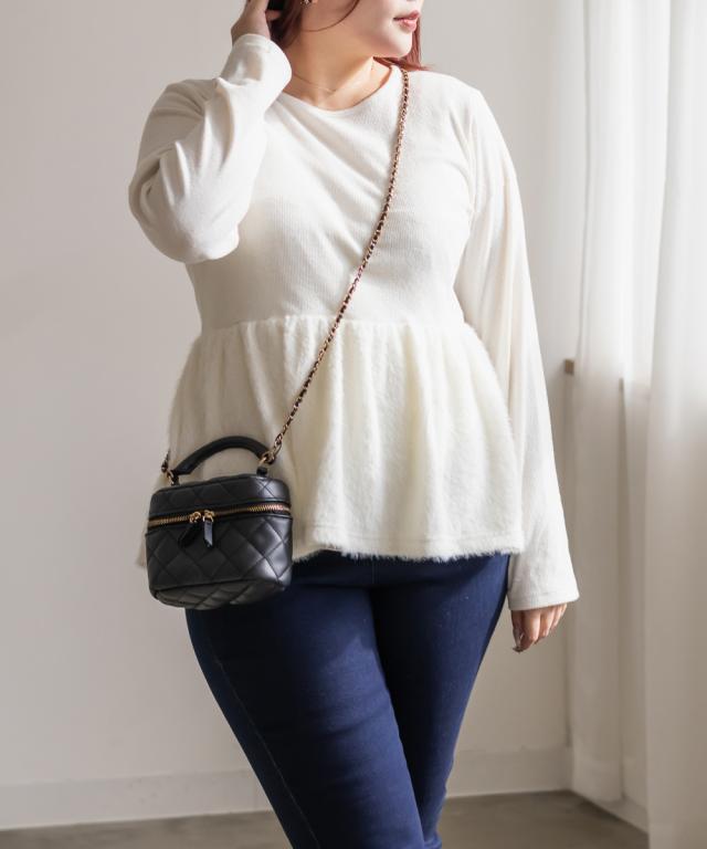 | 3Lを着て丁度いいサイズでした。ふんわりと軽い着心地で、重くならずに着ることが出来ます◎切替より上はらくちんなカットソーで、見た目以上にらくちんで着られます。ウエストは細く見せて腰回りをカバーするいいとこどりのペプラムデザインです!フワフワのシャギー切替になっているのが可愛くてデートやお出かけにピッタリです!ニットパンツ・ナロースカート、ミニボトムとの相性が良いのでおすすめです!アウターを重ねてもごわつかないので、冬も大活躍しそう◎大人っぽくも可愛く着られる、ロングシーズン使えるニットです♪ |