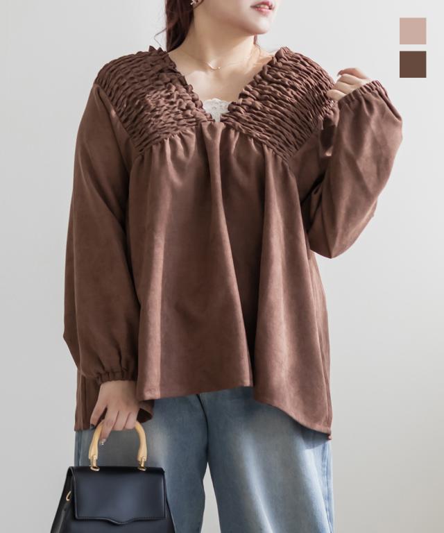 大きいサイズ/レディース/3L/4L/2WAYシャーリングVネックブラウス
