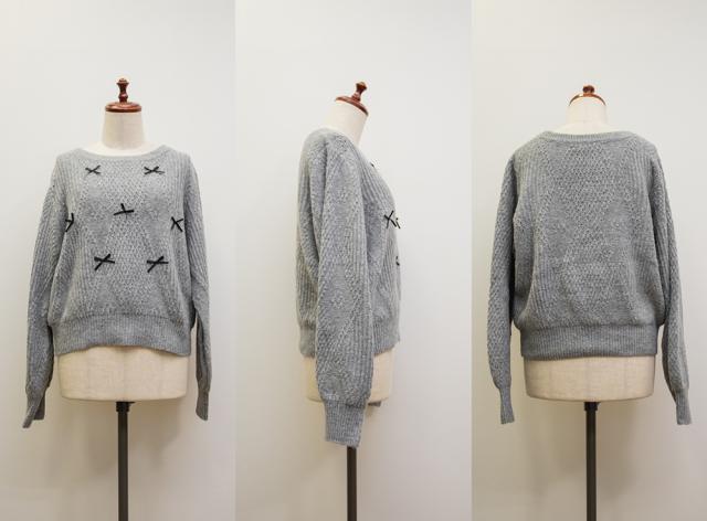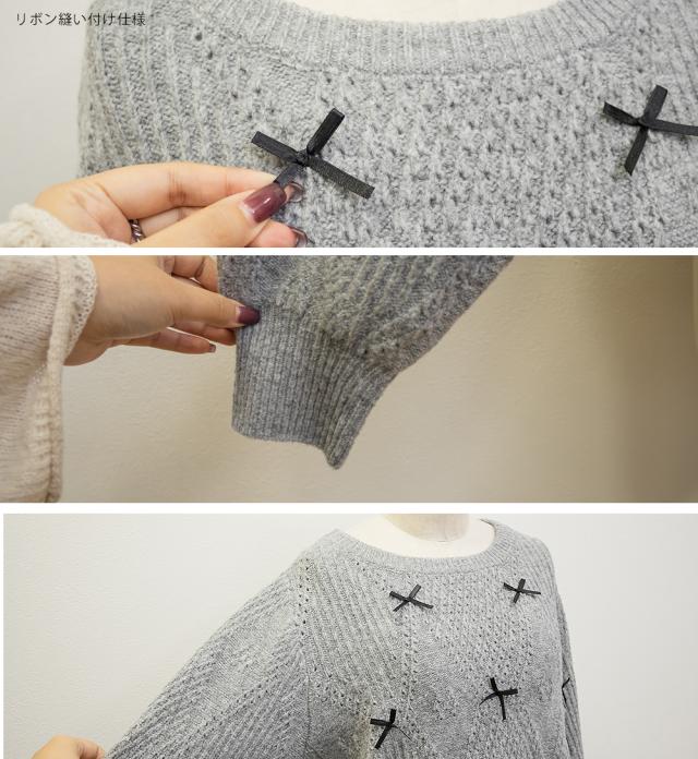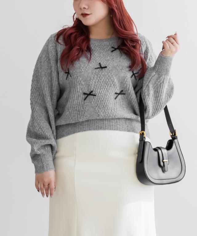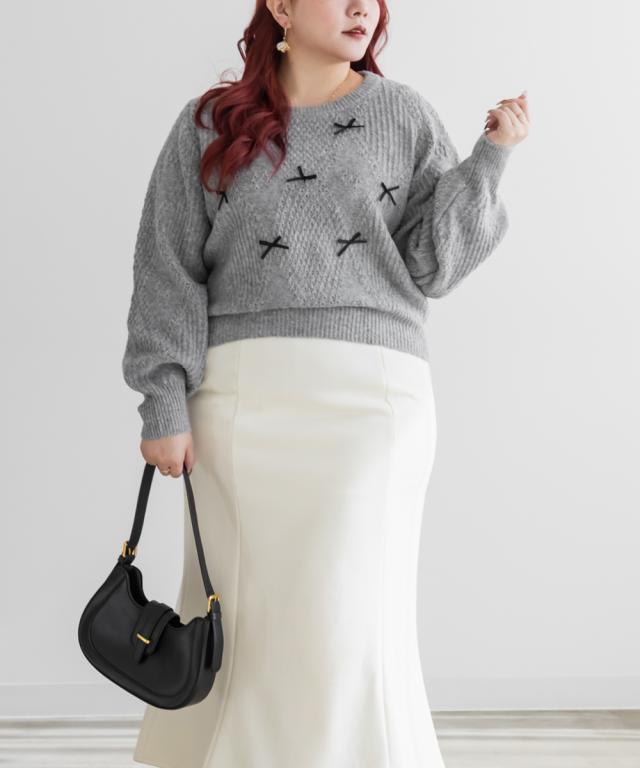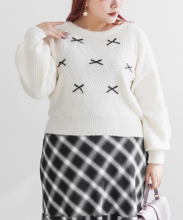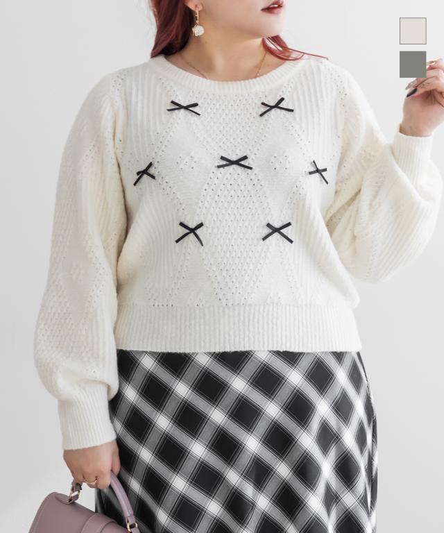 大きいサイズ/レディース/3L/4L/リボン付きニットプルオーバー