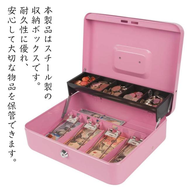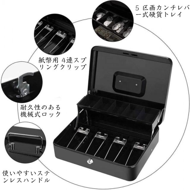 手提げ金庫 キャッシュボックス 会計 オフィス 簡易金庫 貯金箱 金庫鍵付き 硬貨収納 スチール製 保管 防犯 家庭用業務用 貴重品保管 防犯グッズ
