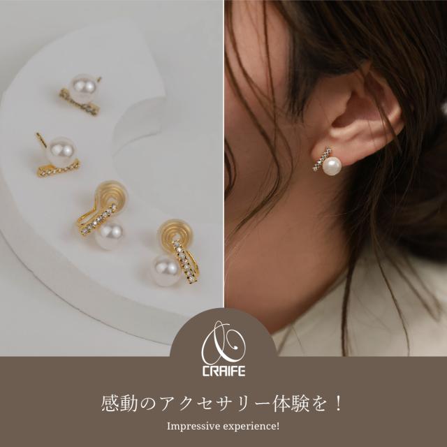 痛くない イヤリング ピアス 金属アレルギー対応 18Kコーティング イヤーカフ イヤカフ パール ジルコニア ジュエリー ゴールド 両耳用 送料無料 プチプライス高見え CRAIFE